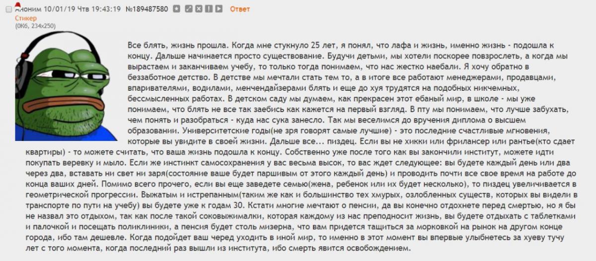 . Ани прачетают, што "фсио харашо и душевно", пайдут и выпадут ф жоскей асадак ат увиденнава... харашо исчо если вовремя саабразят атказаццо и уйти, а веть многие и на ето не спасобны