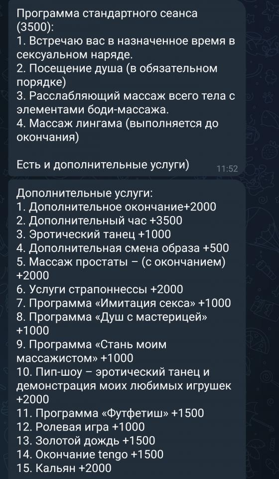 Был в конце весны. На телефон не отвечает, в телеге связь норм. Договорился на секс с МБР за 6тр. час, изначально заявляла 7к. Приехал вовремя, пишу звоню, не отвечает. Прошло 15 минут, уже собирался сваливать, и тут пишет данные для входа.
