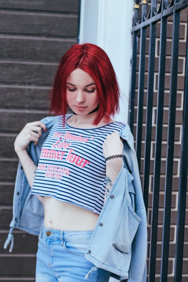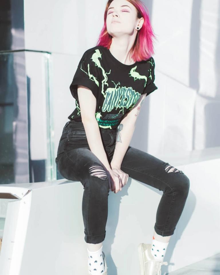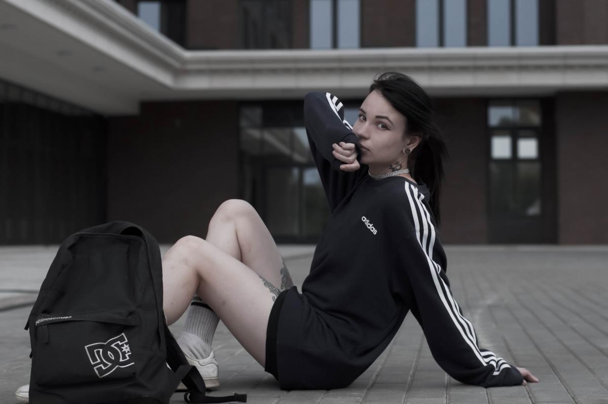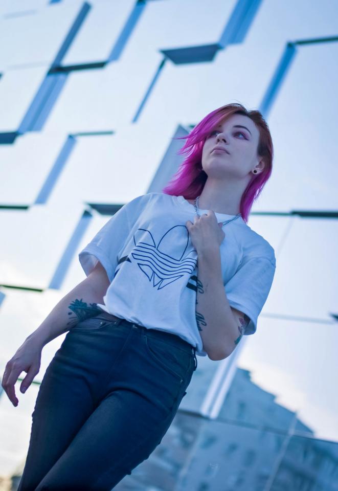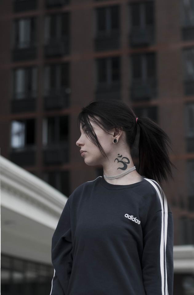 Фото её. Из особенностей - куча татух на теле и полное отсутствие сисек.