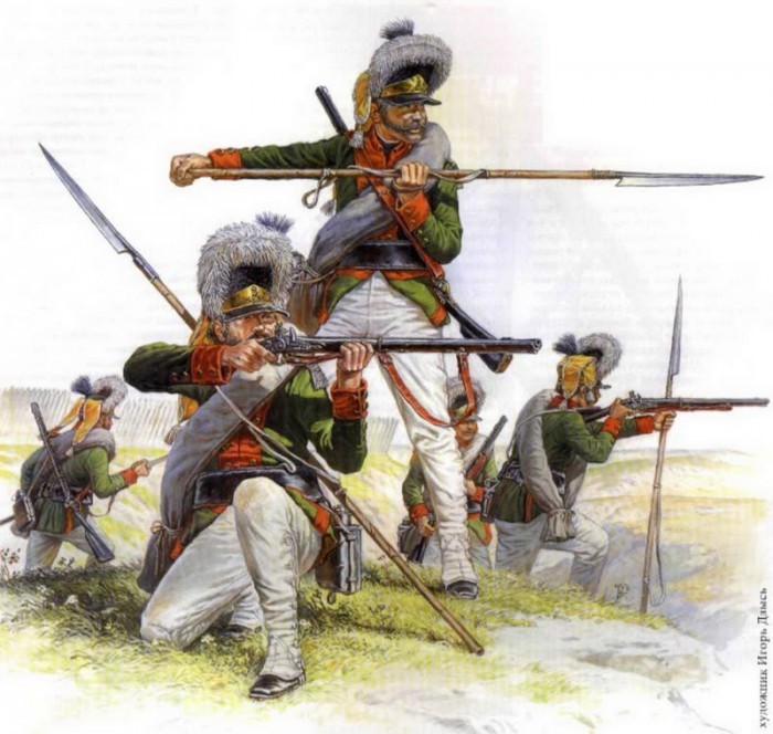 В принципе, гренадеров можно рассматривать, как штурмовые части, спецназ своего времени. К наполеоновским войнам это превратилось в формальность - гренады уже не метались. Отличия между фузилерами и гренадерами нивелировались и свелись к росту, обмундированию (у нас павловские гренадеры на кивера не перешли, сохранив свои остроконечные шапки с переходящими иссеченными налобниками). Даже темп шага к 1812му унифицировали.