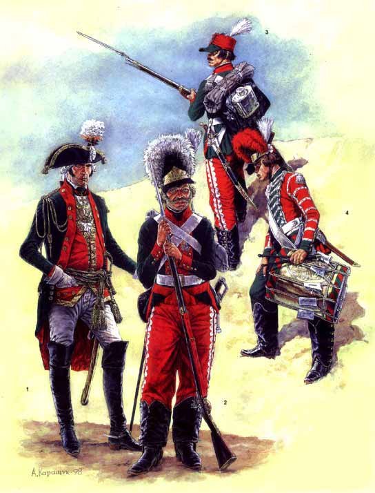 А вот вам русское воинство времен взятия Новороссии. Потемкинская форма - несомненный шаг в будущее. Через 50-60 лет подобное стали носить все. Вот люблю Павла Петровича. Но за откат в пруссакщину - дизлайк ему.