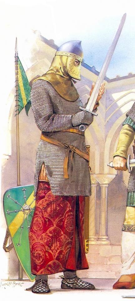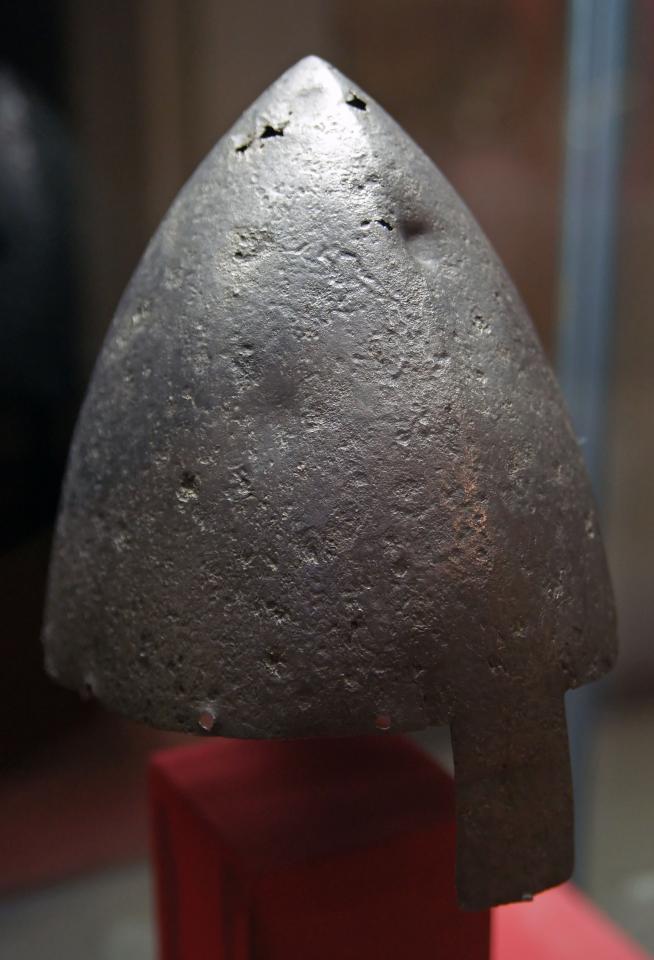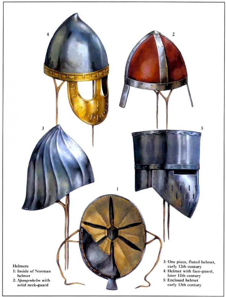 Так вот к 11 веку появляются очень похожие на них формой цельнотянутые шлемы - так называемые норманские шлемы или шлемы с наносником, в изо известные по гобелену из Байо. Мы знаем и ряд артефактов, в том числе шлем Св. Вацлава.