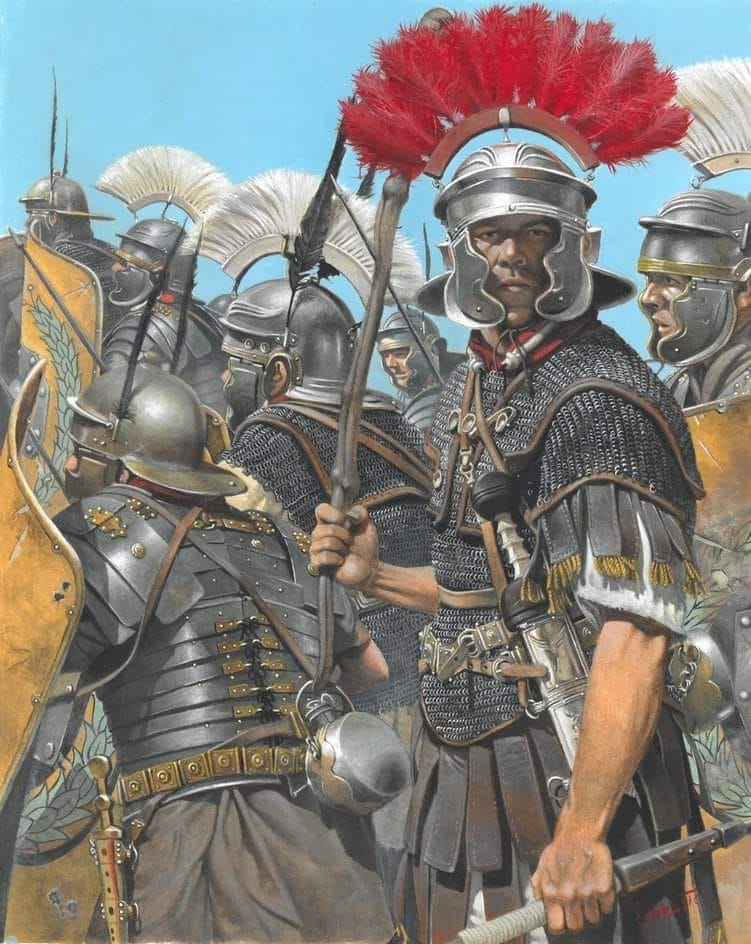 Однако, позднее, с подрывом экономической базы Империи, такие шлемы замещаются шлемами сборной конструкции - двухчастные, шпангельхельмы, бандхельмы и так далее. Мы пропускаем этот интересный этап длиной в 9 веков, их рассмотрение уведет нас в сторону.