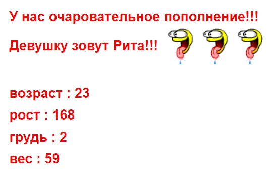 ТТХ, на мой взгляд, соответствуют. На фотки похожа. Девушка не худая, есть некоторая ширококостность, но всё в пределах разумного, выглядит хорошо. Грудь приятная на ощупь, попа есть. Обнимашки без проблем. Не целуется, но целовать себя даёт. Куни – доп (воздержался). Начали с раздевания, обнимашек, ручного исследования молодого тела. Всё хорошо. На теле была обнаружена пара синяков (бывает)). Положил на кровать, пообнимались лёжа. Дальше минет. Это самый плотный минет, который у меня был. Очень плотный обхват! Были даже зубы, но на фоне такого плотного трения это было уже не важно. Лёг поудобнее, чтобы насладиться процессом. Дальше наездница (очень активная), ЗКП, миссия. Во всех позах отлично. Пользовались смазкой. Закончил в миссии, сняли, вытерли, в душ. Дальше всё быстро, потому что пришёл очередной ходок за порцией разврата. Быстро попрощались, разбежались. Всё понравилось.