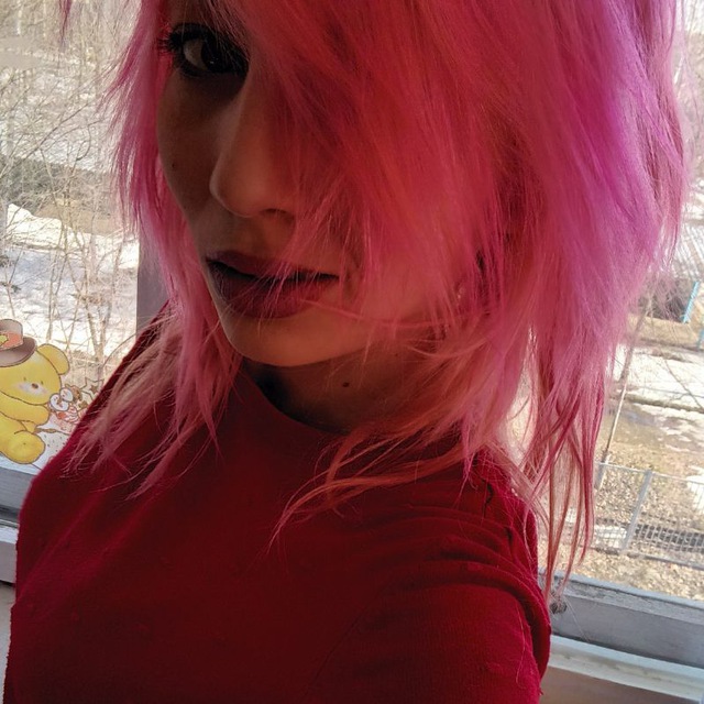 Волосы - ярко розовые