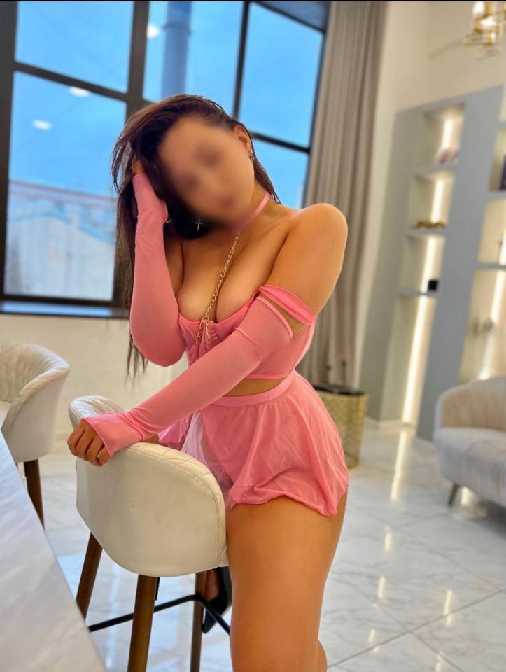Смугловатая. Есть подозрение на наличие южных корней. Возможно, метиска. Черты лица хорошо видны на этом фото. Тот же типаж, что у Алсу, которая раньше была в "Lady S VIP на Фонтанке" и сейчас трудится "Искушении". Подбородок острый, пухлые щёчки, глаза карие, нос с горбинкой. Фигура с жирком, но при этом девочка резвая и гибкая. Спорт показан, пока молодая, иначе через годик будет катастрофа.