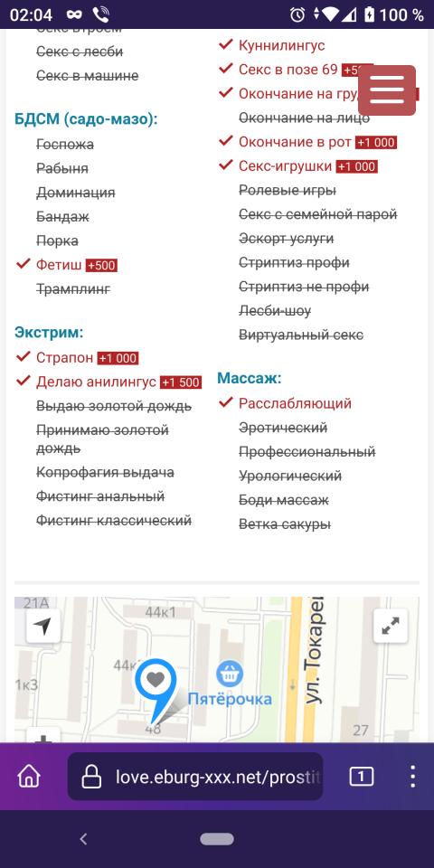 Был в мае. Решил не играть в лотерею с поисками, тем более и времени было не вагон, ориентировался на отчёт выше. Глянул сайт, анкеты включены на этом адресе. Приехал, набрал, уточнил занятость. Всё сложилось, поднялся, встретила брюнетка в повседневной одежде - футболка, спортивные штаны. Лицом симпатичная, но, блин, такая худющая, шо пздц. Решил всё ж остаться, как раз на контрасте с посещённым накануне колобком.