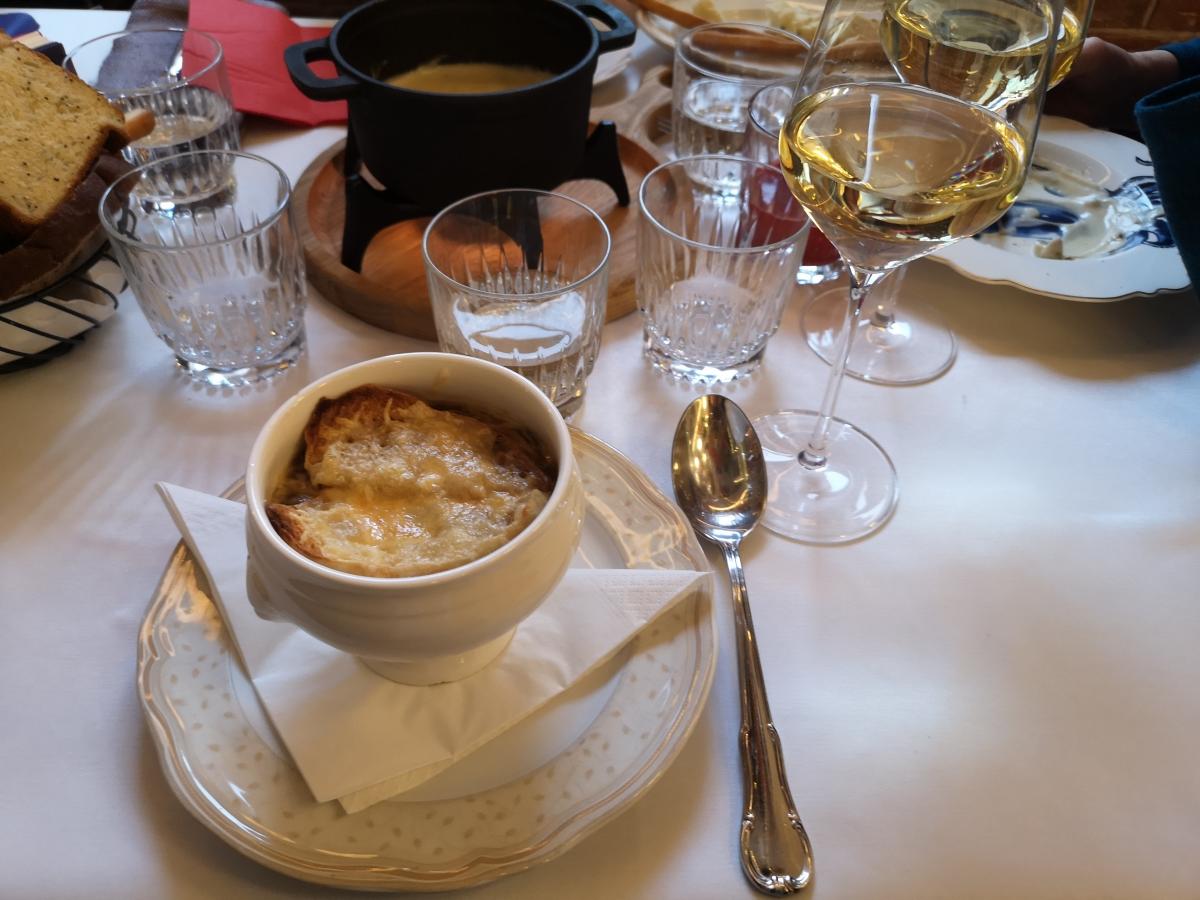 В таком ресторане нельзя было обойтись без классической французской кухни, поэтому взял луковый суп, а еще - ассорти брускет и котлеты из щуки и лосося. Поскольку во Франции никогда не был, не могу сравнить вкус с парижскими ресторанами, но мне все понравилось. Даже кофе был приличный.