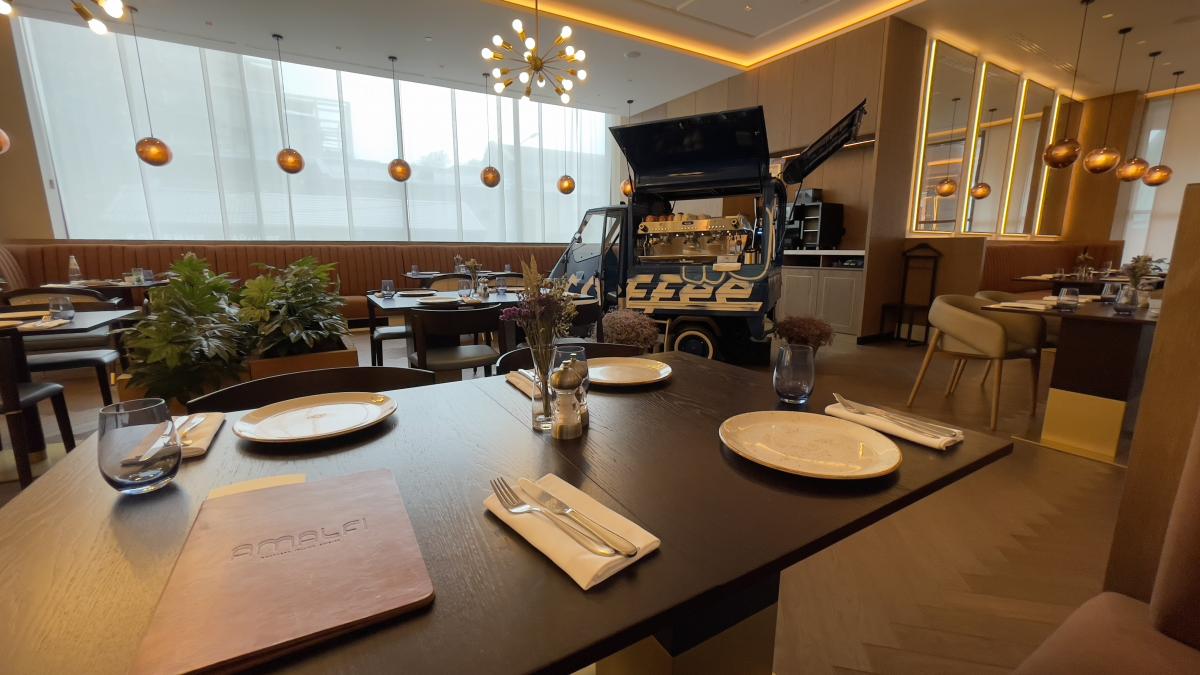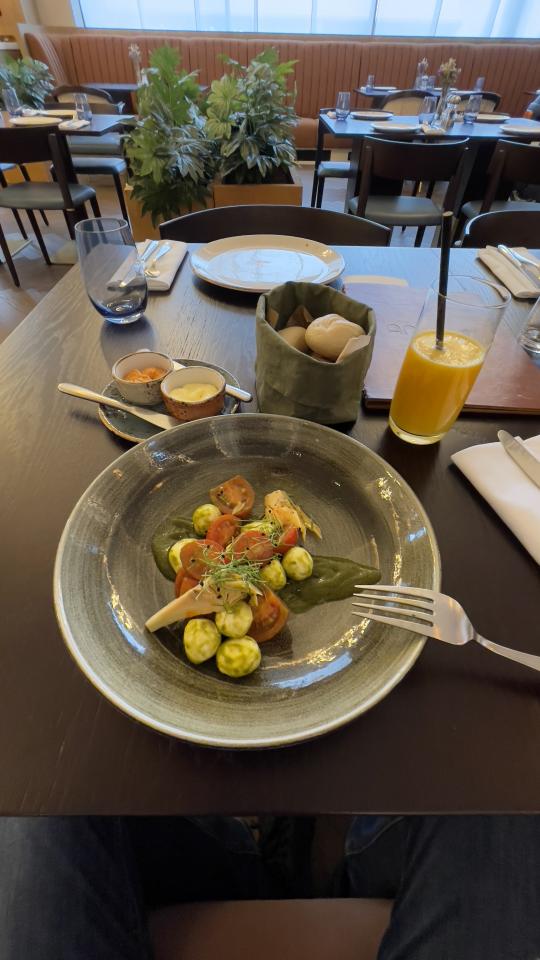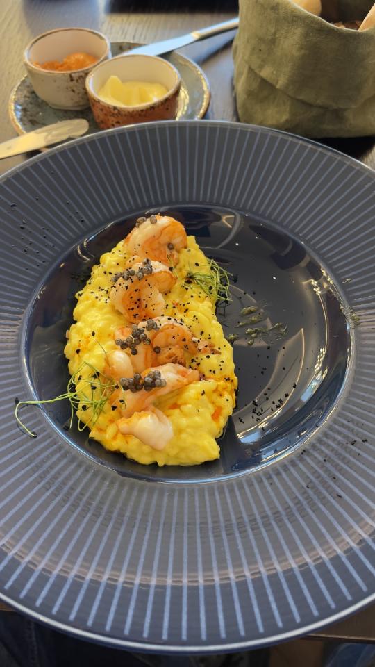 Два ресторана и лаундж бар (работает круглосуточно). Интерьер в ресторане понравился, цены как в Питере, готовят хорошо, но вот сироп в капучино оказался на дне)))) Заказал Ризотто с креветками и чёрной икрой за 1450₽, салат из томатов и артишоков за 890₽, капучино за 330₽ и апельсиновый фреш за 470₽))) Итого за всё удовольствие 3140₽) Наелся уже на фазе салата) Ризотто не залезло)