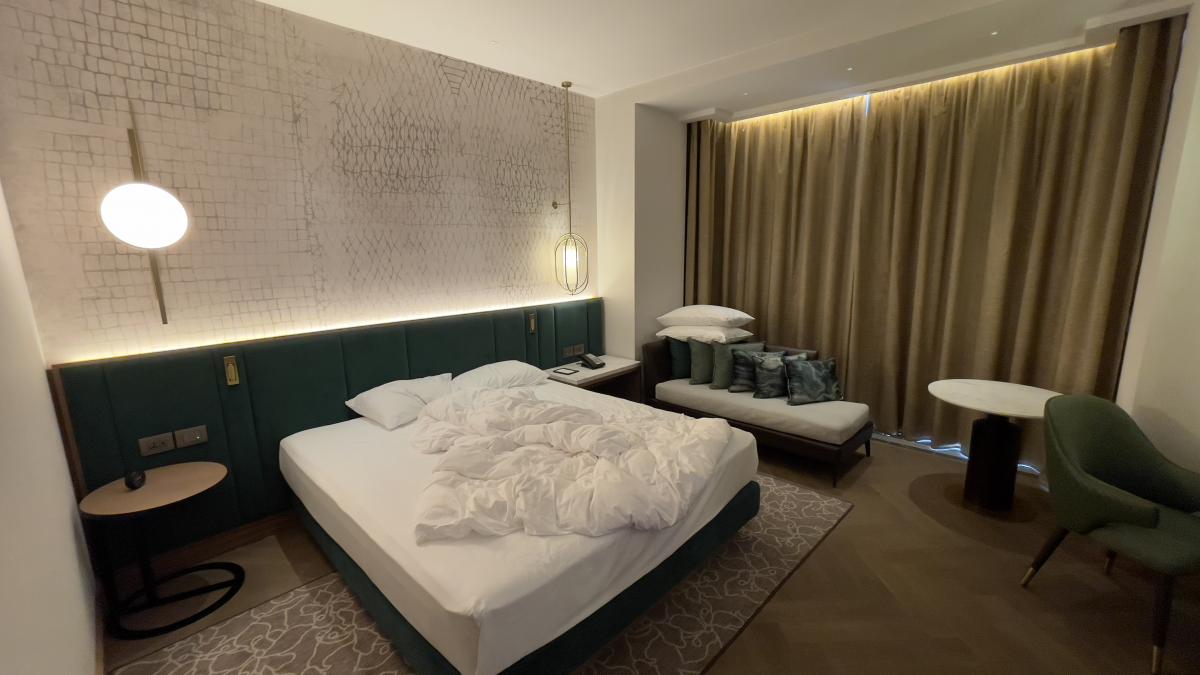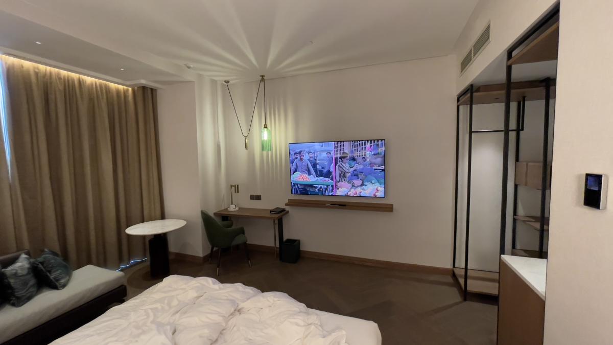 Разместился в самом дешёвом номере Кинг за 8.000 сутки. Номер очень хороший: вся мебель новая, современная, куча подсветок и их регулировок, ночной режим, подсветка зеркал, телек 65 дюймов, минибар. Душ вообще песня) Обычный и тропический, напор воды охуенный, воду сливать по 5 минут не надо (чтобы пошла горячая). Кровать большая двуспалка, высокая (как раз под мой рост чтобы трахать шлюху раком, стоя на полу))). Окна панорамные. Есть люксы.