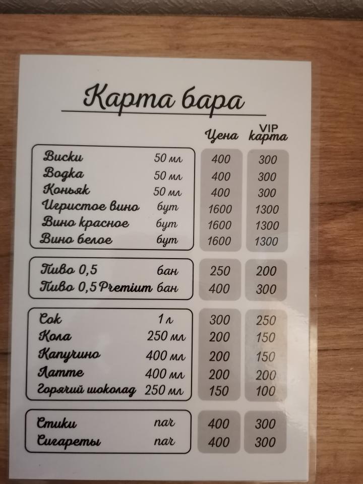 Прикреплю фото их бара, по стоимости напитков. Там хотя бы точные цены есть. Раньше кофе 3\1 был бесплатным, теперь видимо по моей просьбе купили кофе машину, цена стала 200 р.