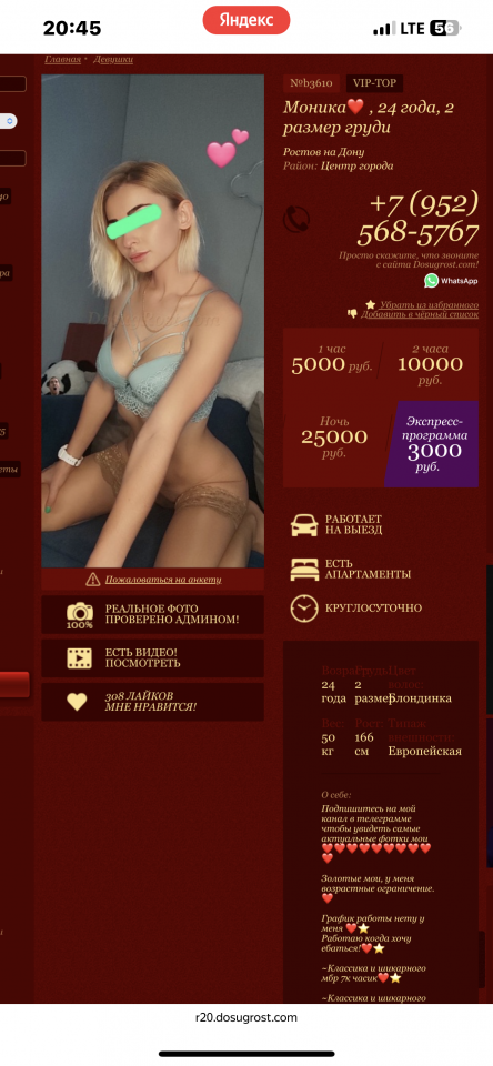 Итог: девочка очень понравилась, на данный момент лучшая у кого был в Ростове)