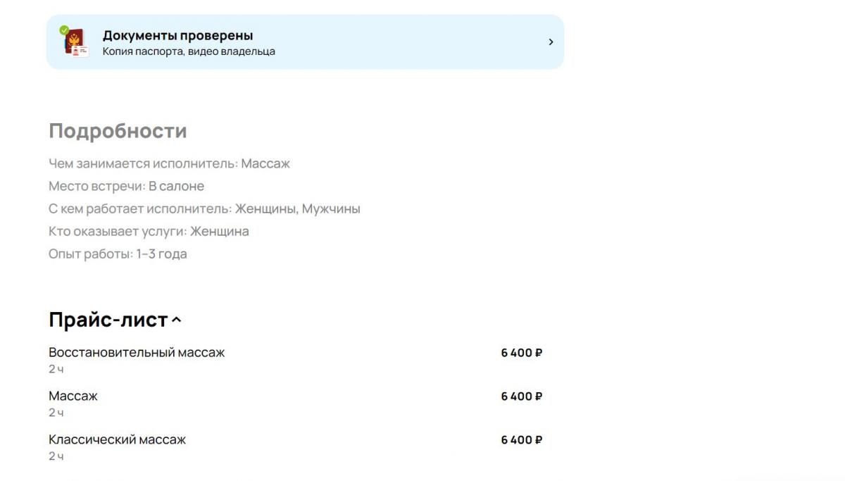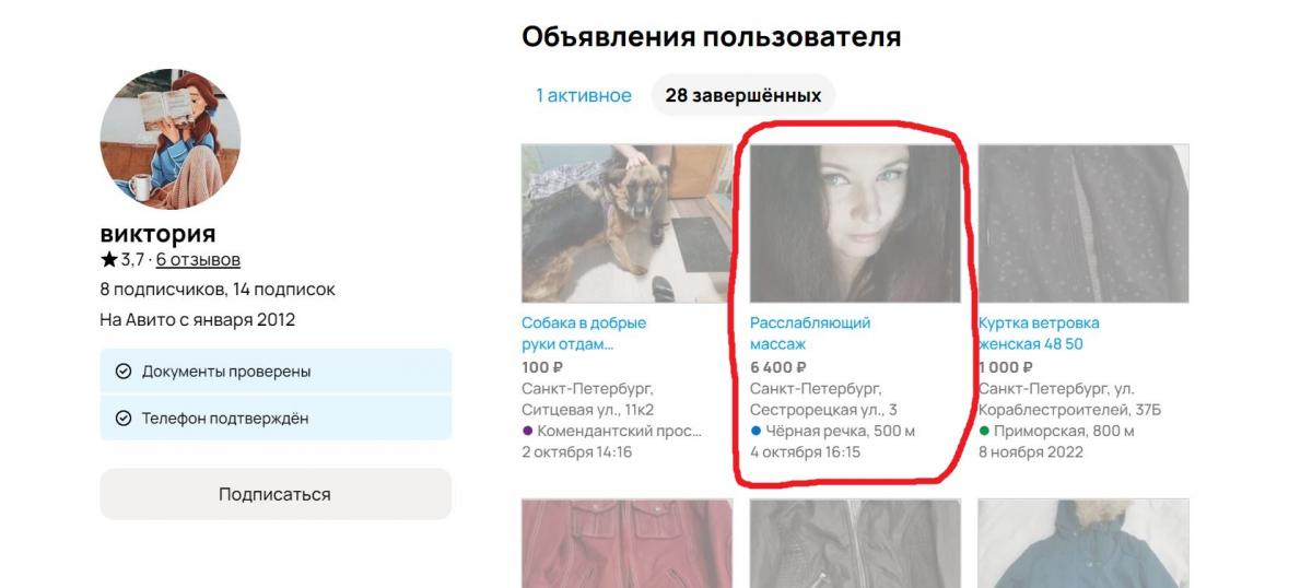 ОК, заглядываю на Авито, настраиваю поиск по радиусу 5 км с ключевым словом "массаж" - вижу кучу всякой хуйни, среди которой взгляд останавливается вот на таком объявлении: