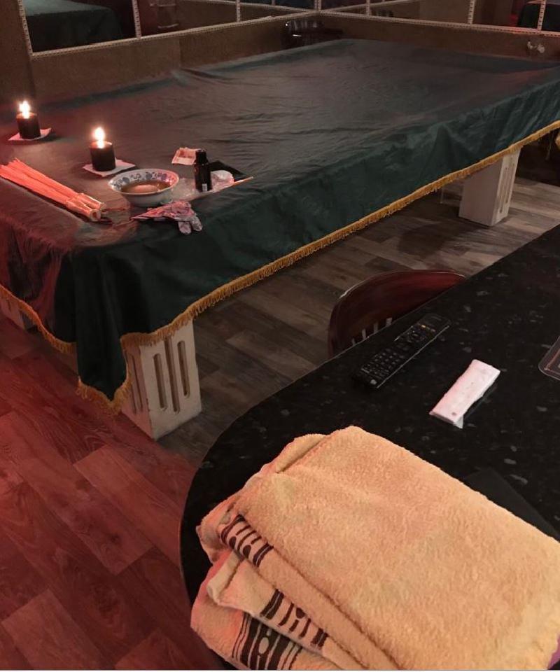 Всё сильно поюзано, так сказать, "музейной свежести". На столе к моему приходу уже приготовлены причиндалы для СПА-процедур - плошка с мёдом и солью, непонятная масляная жижа во флаконе, перчатки для пилинга и бамбуковые массажные веники. Последние при осмотре были отвергнуты из-за присутствия на них чужих потожировых выделений - видимо, эти веники никто не удосуживался отмывать после каждого применения.