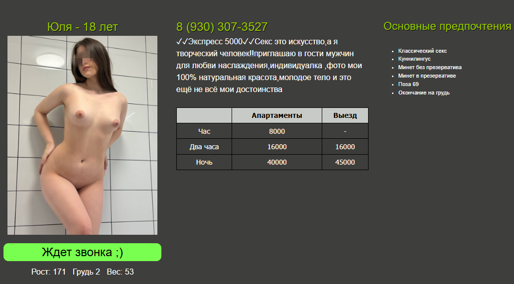 Анкеты на зелёном похожи но не буду утверждать, что новые фото Юлины , без лица не понять а фигура и титьки как будто её. В Московской и с интим-яр анкете номер тот же.