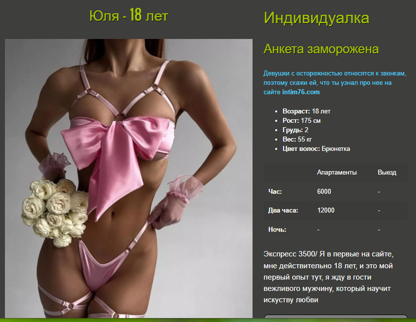 Про эти анкеты и фото? Старая зелёный - https://popki.intim76.com/girls/5728 , новая зелёный - https://intim76.com/girls/6040 , на интим-яр