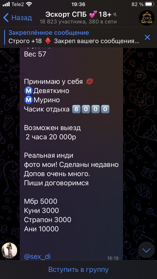 Вот сейчас вбил в вот эту группу https://t.me/Escort_VIP_2 имя Диана