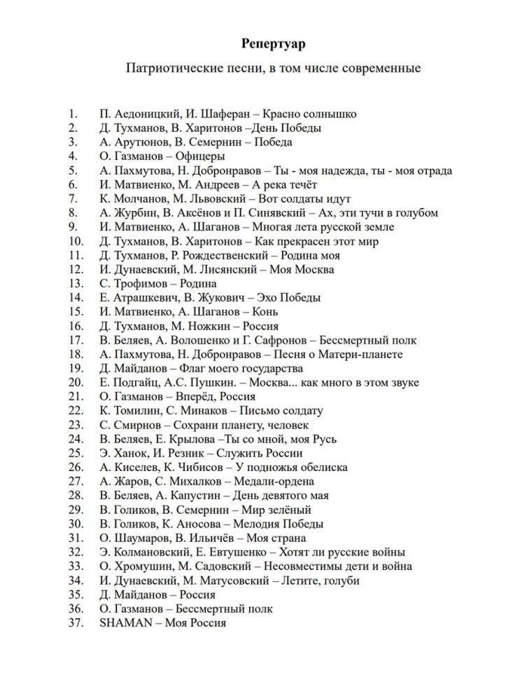 «В список вошли 37 песен, направленных на патриотическое и духовно-нравственное воспитание обучающихся. Школы самостоятельно принимают решение об использовании рекомендованных произведений», — говорится в сообщении.