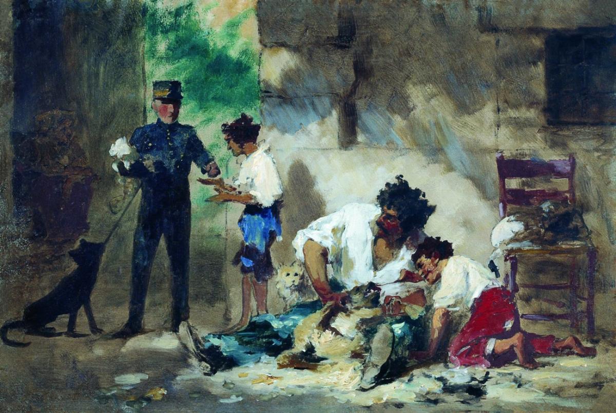 Бронников Фёдор Андреевич (1827-1902) - русский и итальянский художник-живописец. "Стрижка собак в Неаполе":