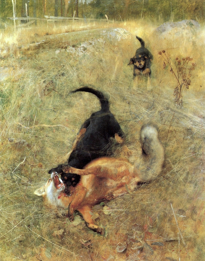 Бруно Андреас Лильефорс (Bruno Liljefors) (1860-1939) - шведский художник-живописец, анималист. "Бигли и лиса":