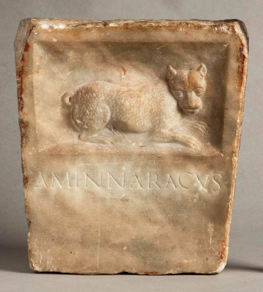 Римское мраморное надгробие для маленькой собаки по имени Аминнаракус, 1-2 век н.э.