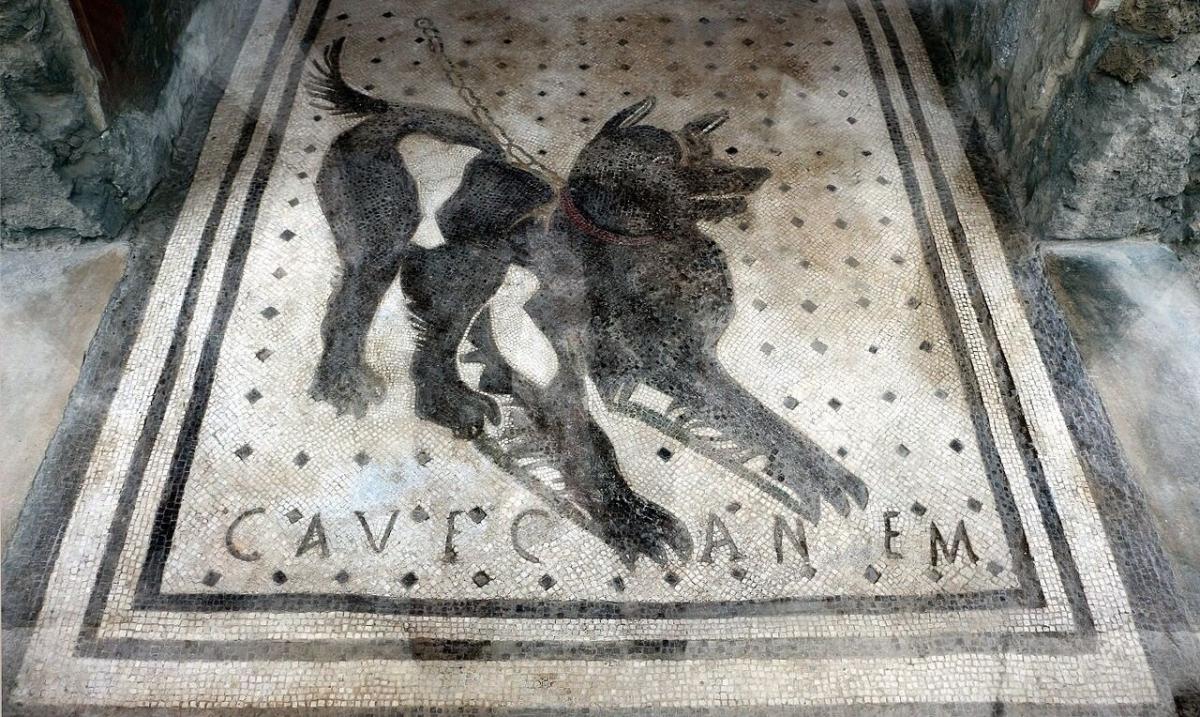 Сохранился этот рисунок и надпись, которая переводится как «Берегитесь собаки» у дома Трагического поэта. Пес не выглядит устрашающим. Есть историки, считающие, что надпись призвана была не устрашать, а предупреждать гостей о наличии собаки в доме.