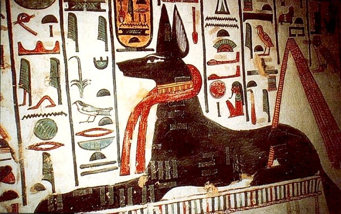 Бог загробного мира Анубис с собачьей головой.