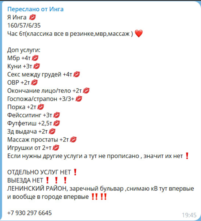Наличие и цены допуслуг: 6000 р. за 1 час КС + МВР; допы: МБР +4000, куни +3000, ОВР +2000, ОНЛ/ОНТ +2000, игрушки +2000