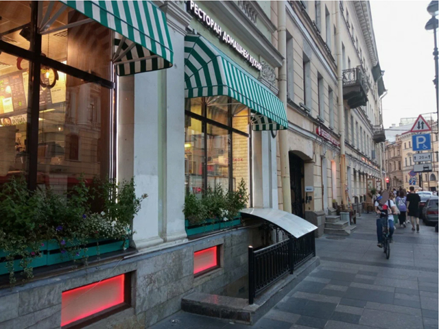Малозаметный без вывески вход в подвал, пройдёшь мимо — не заметишь, если б не промоутеры у входа или на углу Невского.