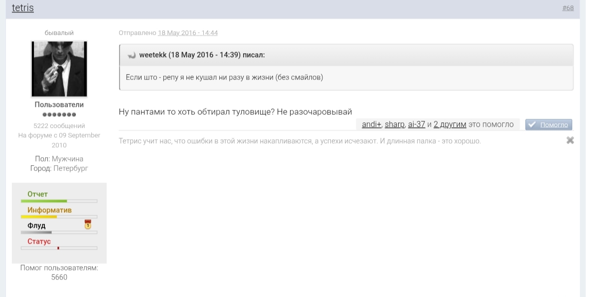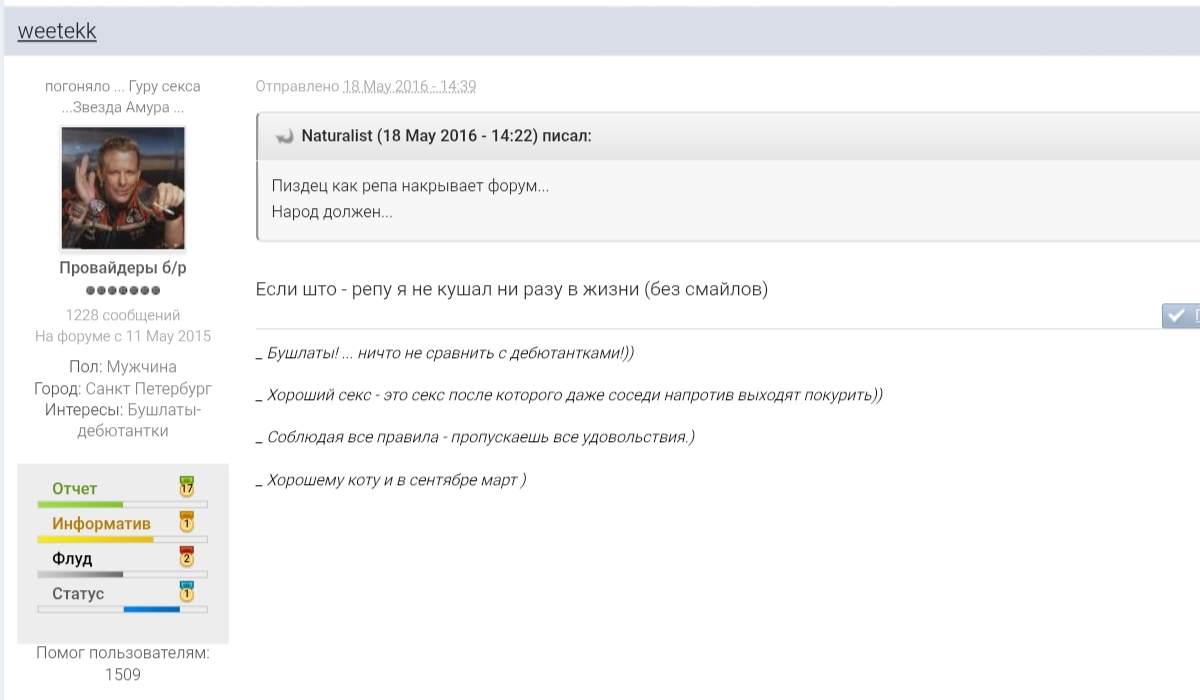 Ну уж простите нас, профанов по репе, если затронул Ваши чувства в отношении ее)