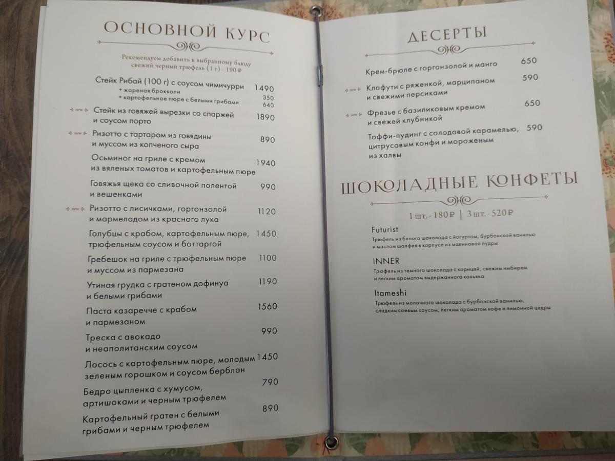 Рест строго рекомендован к посещению. Готовить умеют. Особо надо отметить холодные закуски: карпачо, тартар, севиче. Это то зачем туда точно стоит сходить. В молекулярную кухню не упарываются, сет-меню и шоу подач нет. Повару и официантам 5 баллов.