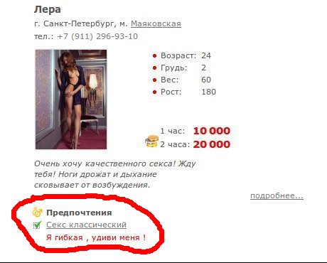 Ну вы развели блин. Товарищи, я от своих слов не отказываюсь, честно написал, что деве обещал отчет. И написал. Если бы не понравилось - не стал бы. Про то, что она была в Свитс, я в курсе, потому и пошел. Думал, что из текста это понятно, но видимо не всем. В остальном я написал то, что считаю важным, для меня важны внешность, молодость, упругость и натуральность, если у вас другие критерии - читайте других пользователей форума, в чем проблема-то? Я хоть где-то соврал? Вообще, тема интересная - у меня в практике было 7 (СЕМЬ) походов, когда я приходил к захваленным тут девам. Приходил, разворачивался на пороге и уходил. Я могу обосрать их в их ветках, но зачем? Вкусы у всех разные, ну не все такие привередливые, кому-то норм сиськи без формы, растяжки и т.д., кому-то нет.