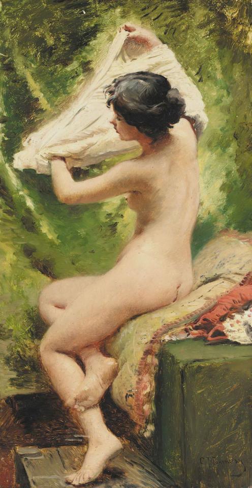 Надеюсь, художник натурщицу все же писал в студии, а фон - отдельно