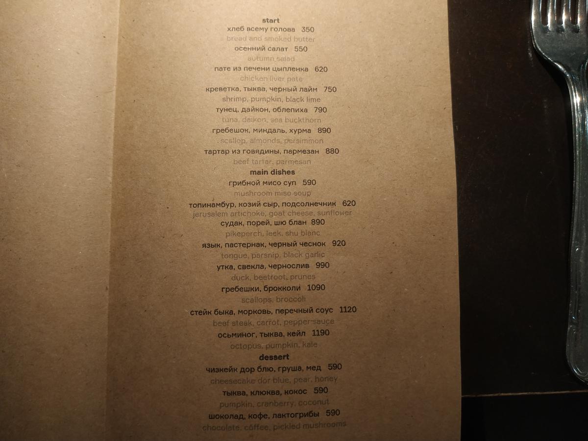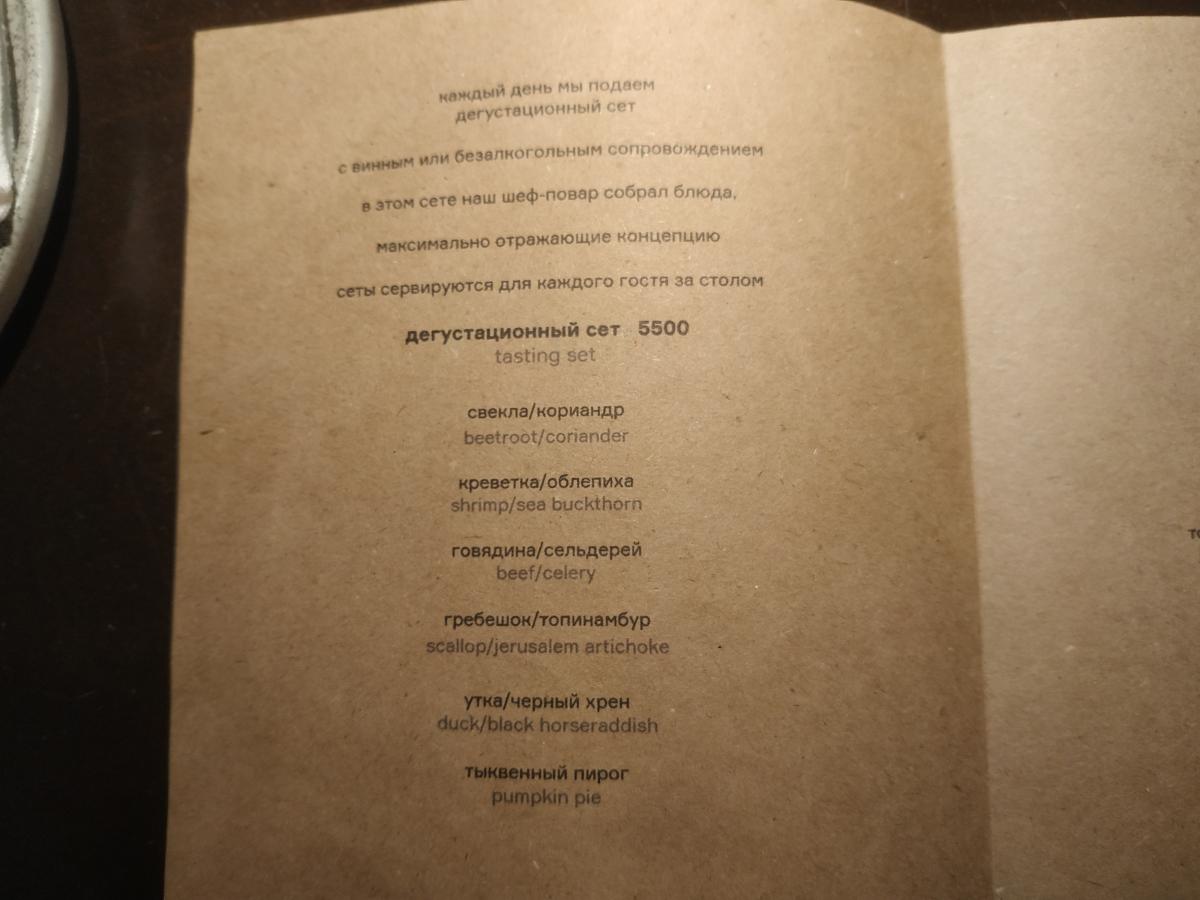 Два вида меню, как сейчас модно: дегустационный сет и а-ля карт.