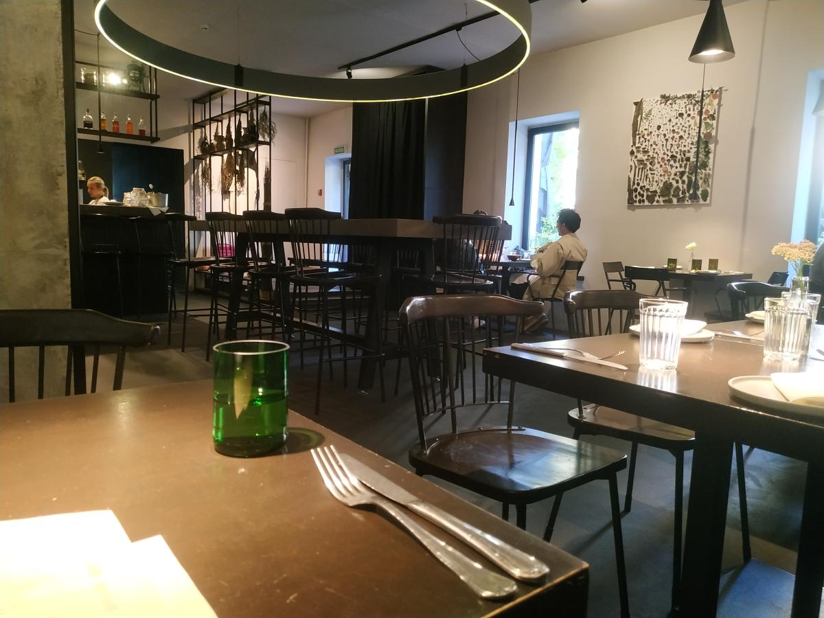 Очередной модный кабак в районе Чернышевской, с хитровыделанной кухней. Одно скромное помещение около 50 кв/м, на 28 посадочных мест, с одним сортиром (белая никак не обозначенная дверка у входа). Работают с 13:00 до 23:00, но, то что встречается не часто, с 16 до 17 у персонала сиеста... Собираются на перекус за общим столом посередине. Никого в это время не обслуживают, но в кабак пустить могут.