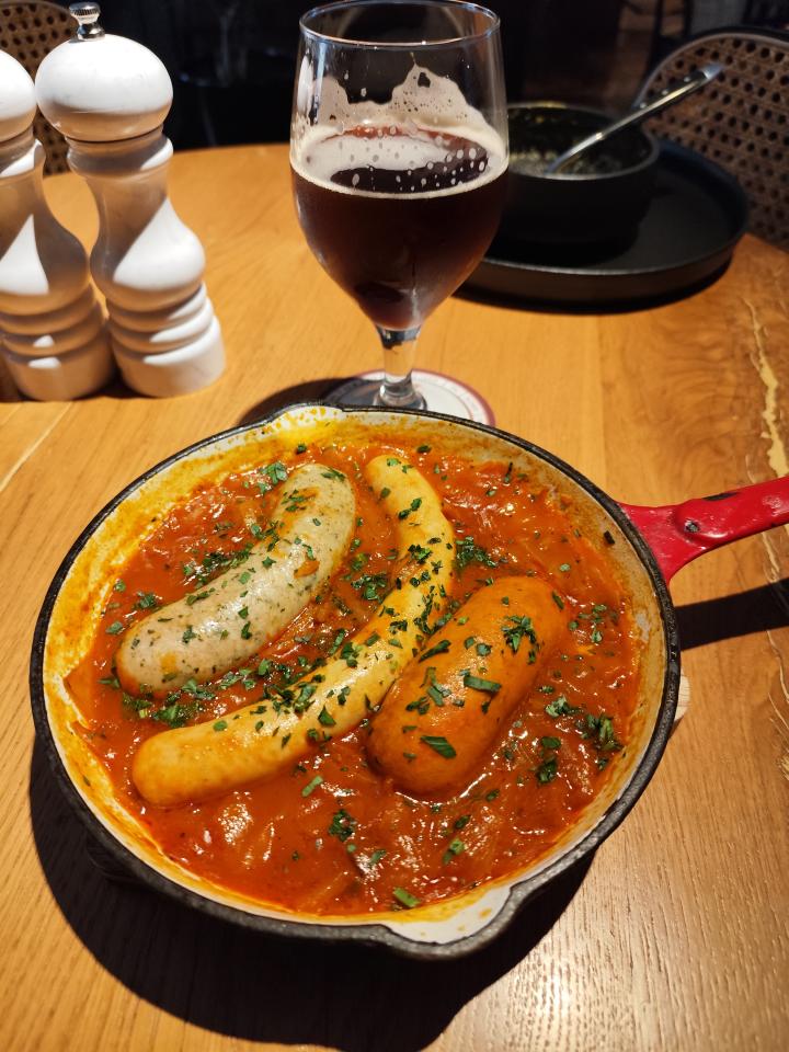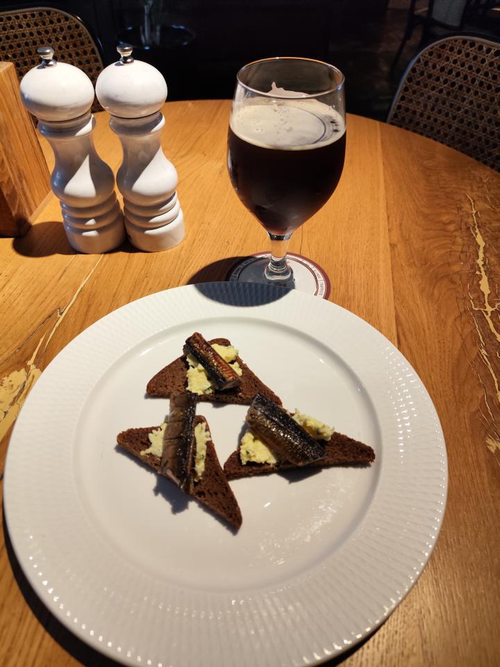 Из еды были бутербродики с миногой на черном хлебе, тыквенный суп и ассорти колбасок с тушеной капустой. Все понравилось.