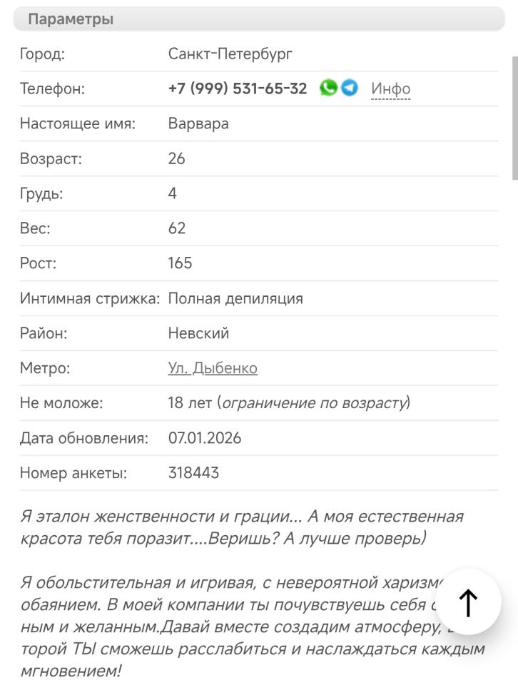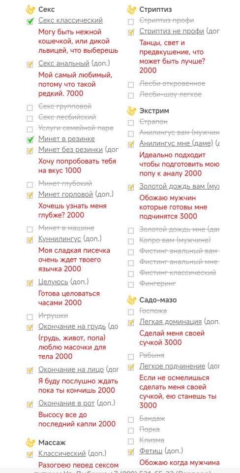 Принимает в студии в кудрово. По сервису нареканий нет. Отдал 7к и 1к мбр. У нее каждый чих - доп. Целуется, но тоже за +2к.