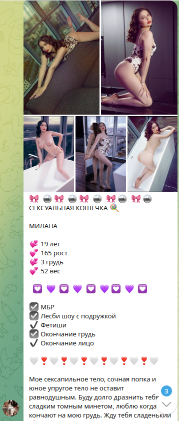 Нашел деву на феипитер 45563-id там ссылка на телеграм: @Trahninas98, а на этом акаунте сылка на телеграм-канал t.me/+0SOJXoBqsSRmMTAy где представлены реальные анкеты и актуальное расписание. Созвонился, договорился, в прошлую субботу, утром приехал. Позиционирован правильно. Дверь открыла админ. На выбор есть резиновые тапки и одноразовые. В салоне два совместных санузла один с душевой кабинкой, другой с ванной. Вошла Милана в темной комбинации, такая скромница - глазки в пол, с улыбкой Джоконды. Фотографиям полностью соответствует и TTX верю, короче для меня тушка зачетная. Дал денег, попросил полотенце и пошел в душ. Ополоснулся без проблем. Вернулся, дева все приготовила и тоже пошла в душ, минут на 5-10. Вернулась и предложила лечь, ну нет, предложил начать с обнимашек стоя. Сняли полотенце и началось, к сиськам лицом прикасаться нельзя, у неё оказывается на это табу. Вальтер резко мимо. Стояла по стойке смирно, дескать твори что хошь если это не больно. Помял тушку, чую настроение начало падать. Предложил переместиться в койку, одел презерватив. Дева взяла член и не торопясь, вдумчиво стала втирать в гандон гель. Блин, чуть было не поубивала всё, что надрочено непосильным трудом. Пристроился и протиснулся пока не поздно, процесс как то пошел. В процессе, гибкость никакущая - ноги на плечи с большим трудом, руки скрестила на груди, доступ к сиськам злобно ограничен, лежит и с интересом наблюдает, что это там мужик вытворяет и, главное, зачем? Минут 10 потрепыхался, с разными режимами скорости и амплитуды, но искру высечь так и не удалось, ну не накрывает и все тут, как куклу жаришь, нет, кукла сиськи не закрывает, в общем хрень какая то сплошная. Кончить так и не удалось. Надоело, вытащил ствол и улегся. Дева сразу же закурила какую то электронную соску и заговорила, обсудили не легкую жизненную долюшку. В дверь постучали, оделся и откланялся. Салончик, в принципе, не плох, если другие девы хороши, но я чего то уже побаиваюсь. У Миланы какая то профессиональная деформация, а я бы даже сказал - профнепригодность, в принципе всё описал. Денег и времени безумно жаль, но пока не столкнешься не поймёшь, зато теперь душа спокойна, бывало и гораздо хуже.