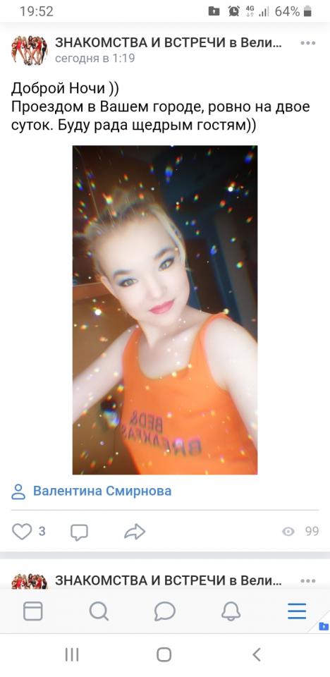 В блядогруппах ВК была найдена юная мадам под именем Валентина Смирнова id58один58четыре894. Видел её страничку и раньше, облизывался на фото. Решил посетить.
