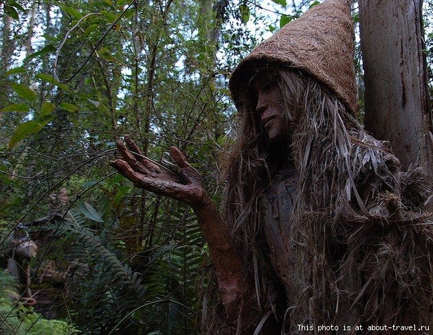 необычной природой, в которой в частности встретил много живых бревен и деревьев