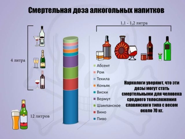 Так ведь тут вопрос, за какое время употреблено указанное количество. Если за сутки или хотя бы часов за 12-15-то 1,1-1,2 литра точно не смертельная доза, проверено неоднократно ))) Конечно, если пару пузырей подряд въебать часа за два-три - вполне реально ласты склеить. Не пробовал так и не собираюсь, в таком режиме максимум грамм 700 употреблял )))