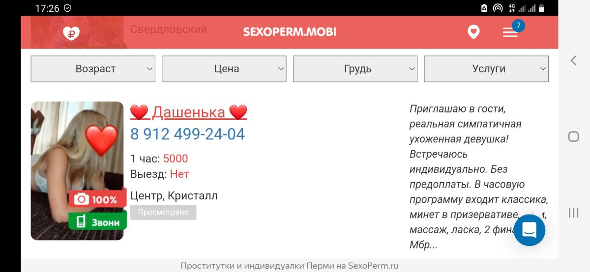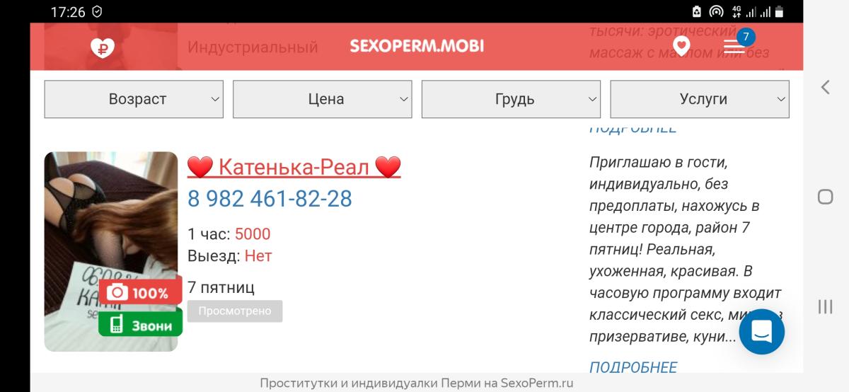 Цитата: "Следующий созвон +7950-47-86-760 принимает Клары Цеткин 35 , ценник 3,5 час . Уточняю час или экспресс , говорят час . Приехал , дом новый , в коридоре темно и нифига не видно , час 1 финал , на вопрос что делать оставшееся время молчание и повтор один финал один час ."