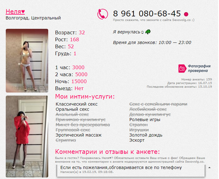 Потерял контакт, последний раз был у нее в Дзержинском. Твердая 5 из 5, как минет, так и классика. Жаль, анала нет.