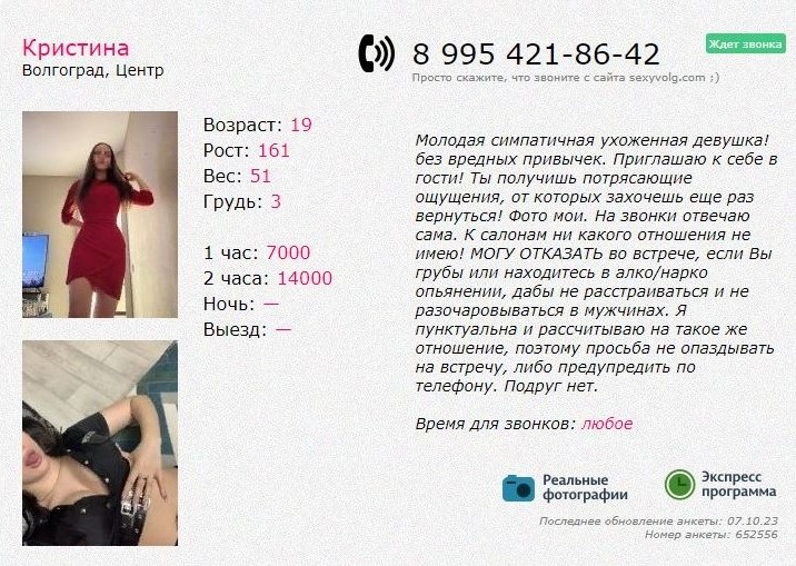 Уж лучше Оксана два часа 7500 которая (она одна такая, ток анкет несколько) и активная и целуется и к процессу основательно подходит, учитывая предпочтения гостя.