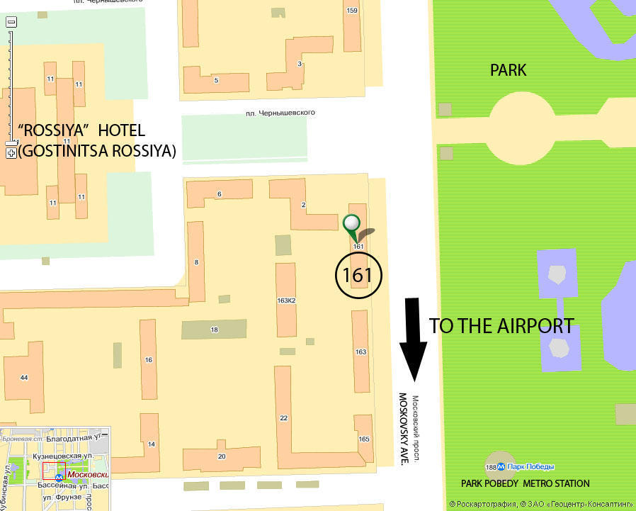 It takes only 20 minutes to go there from any of the airports, Pulkovo 1 or Pulkovo 2.