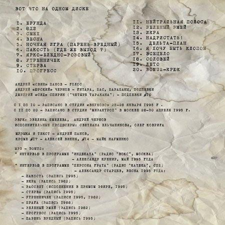 Вниманию коллекционеров! Ранее запись "Тел. 1979-1994. Претензии не принимаются" издавалась на кассетах - оригинальная последовательность и количество песен были изменены. В кассетное издание были "вклеены" записи 80-х годов (Рейган-провокатор / Я позвоню / Я никому не нужен / Возможности), которые к этому альбому отношения не имеют и будут изданы отдельно.