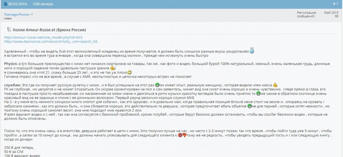 Да было такое дело с амур руссом. Ну кому хорошие были, кому не очень, всем не угодишь, не стану давать оценку. Одно знаю точно. Резонанс у них был не слабый, там народа столько задействовано вот их пресса по этому поволу писала lci.fr и лесентюэль их. Так же на форуме обсуждали amour-russe.net активно, и даже скрины отзывов клиентов о них. Там правда отзывы тем кто зарегестрован видно, содрал их от туда, добавляю здесь что бы кому интересно не морозились с лишней регистрацией. Не все правда вышло добавить, лимитирован вес.