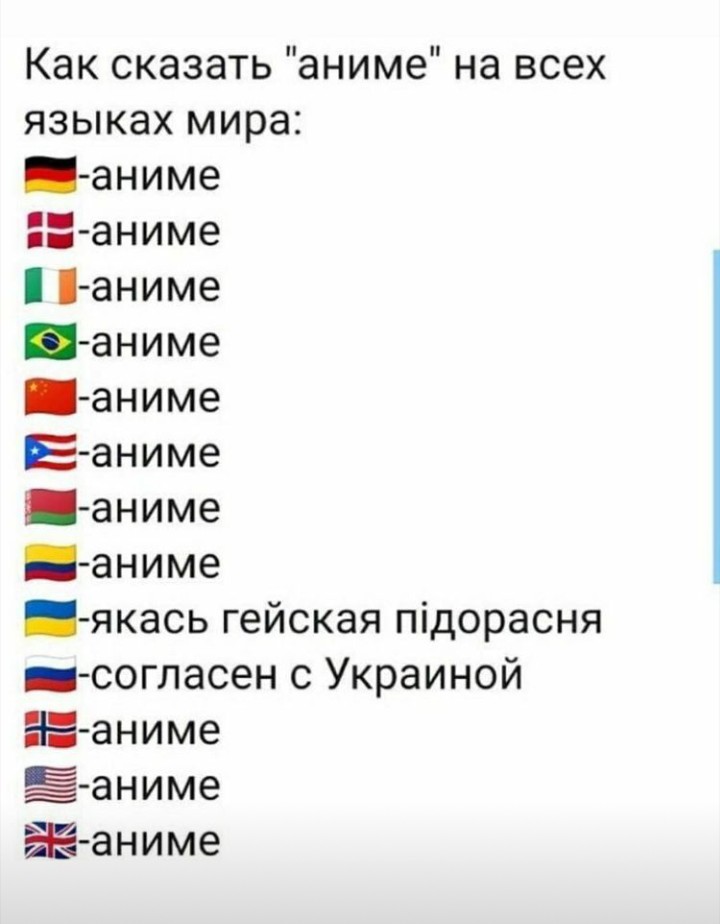 + 100500, кроме посленего ...и не из-за УкраИны..)) ...а из-за того, что сам видел японско-китайское "секси-аниме"... ...и смотреть его было интересно...-)) ...а "пидоров" - ненавижу!...-)))