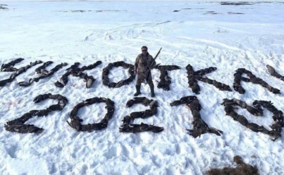 Депутат от Единой России Александр Краморенко на фото он позирует с циферками выложеными из убитых им птиц.