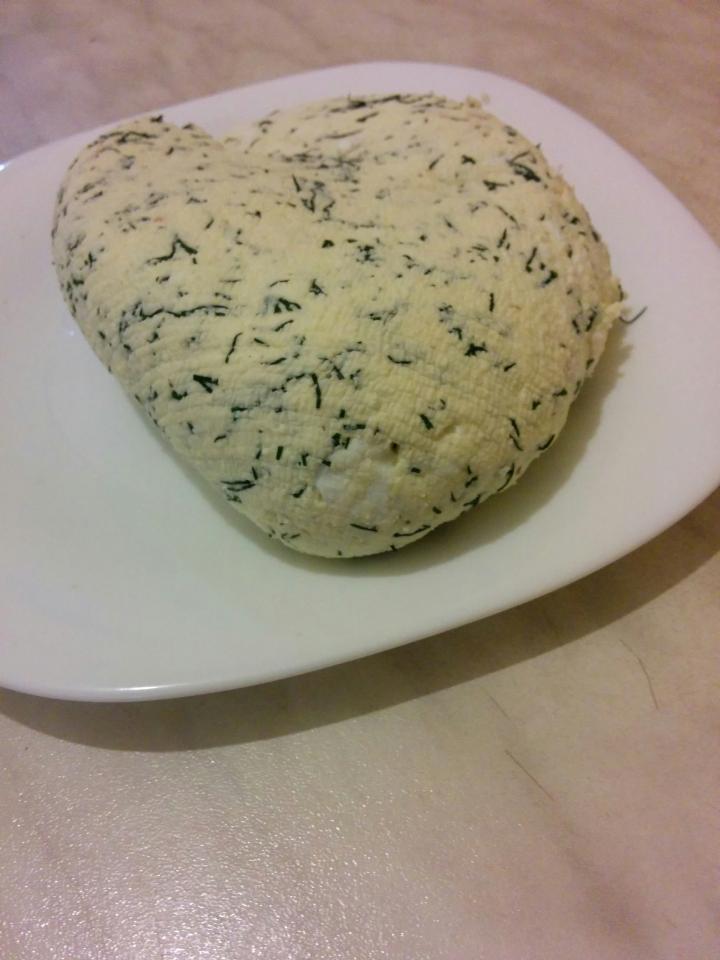 если подвязать марлю и оставить висеть на ночь, ну или часов на 12, получится довольно крепкий комочек, грамм на 800 который можно будет резать ножом на пласты,